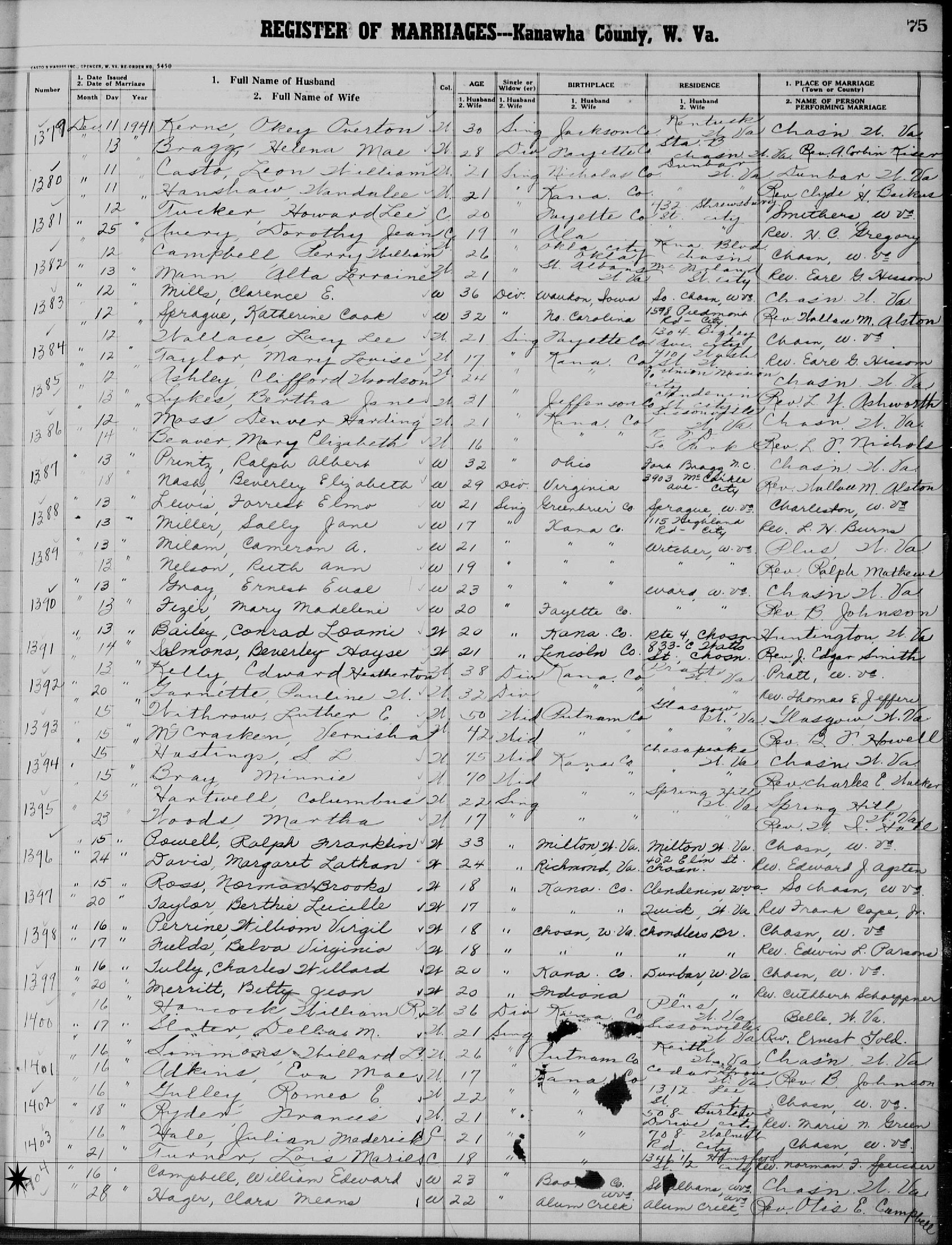 Married: William Edward Campbell December 28, 1941 in Charleston, Kanawha County, West Virginia. (Marriage License: December 16, 1941.)
