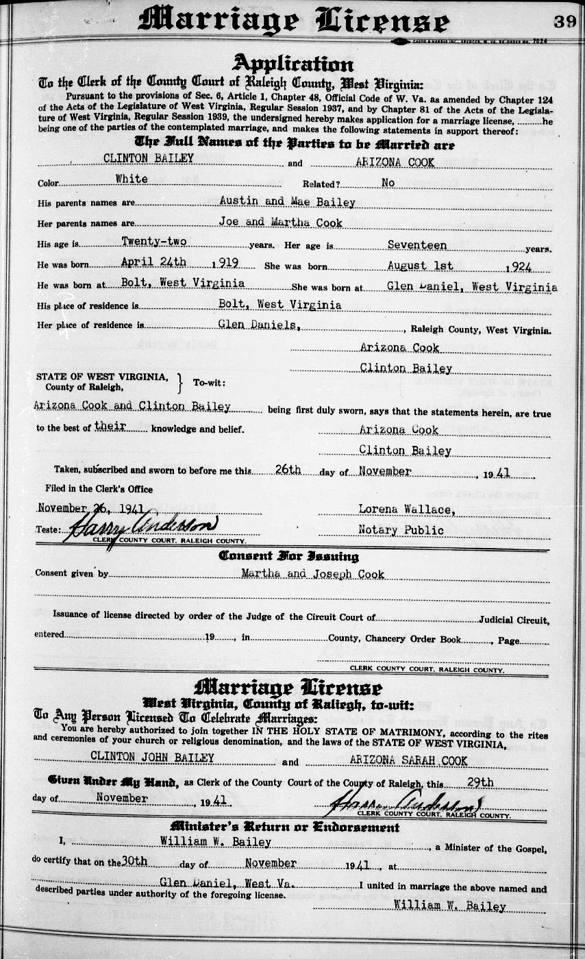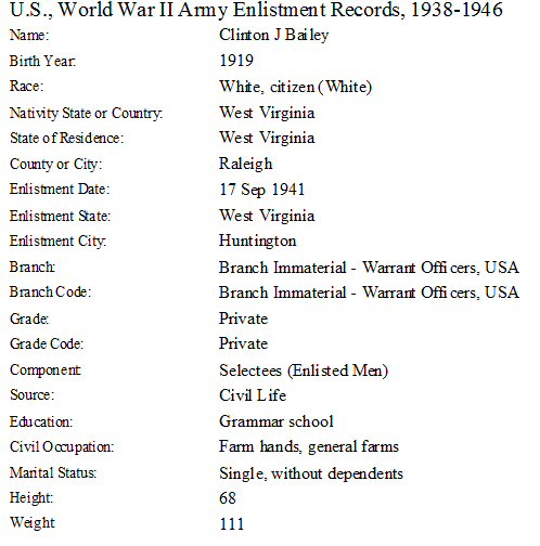 Born: April 24, 1919 in Bolt, Raleigh County, West Virginia.