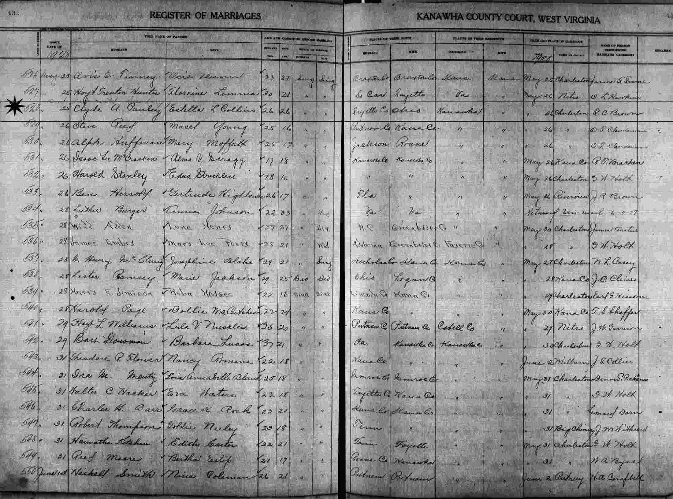 Married: Estella L Collins May 26, 1928 in Charleston, Kanawha County, West Virginia. (Marriage License: May 25, 1928.)