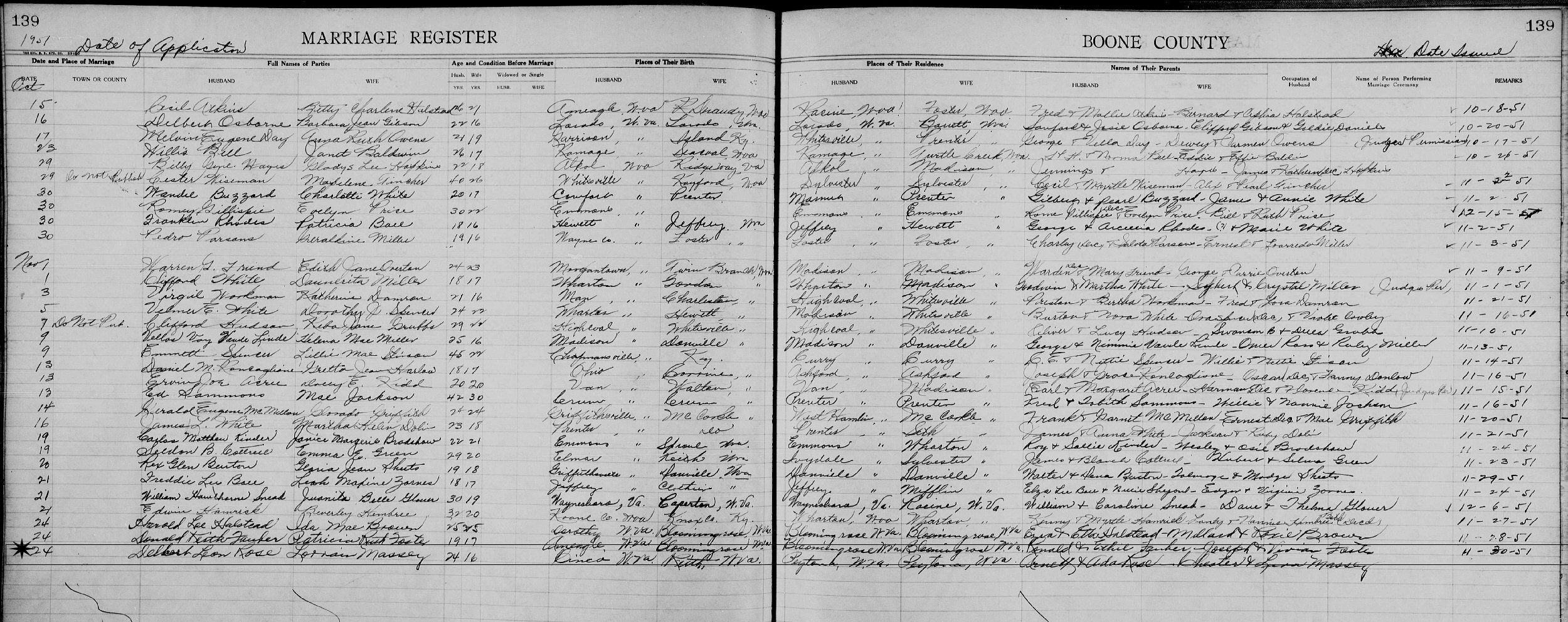November 24, 1951 - Peytona, Boone County, West Virginia.