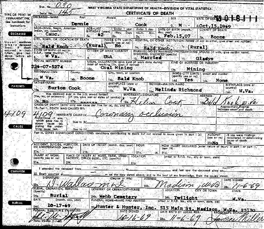 Buried: Webb Cemetery, Twilight, Boone County,West Virginia.