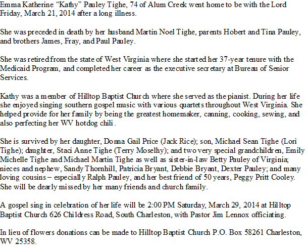 Notes for EMMA KATHERINE PAULEY TIGHE: