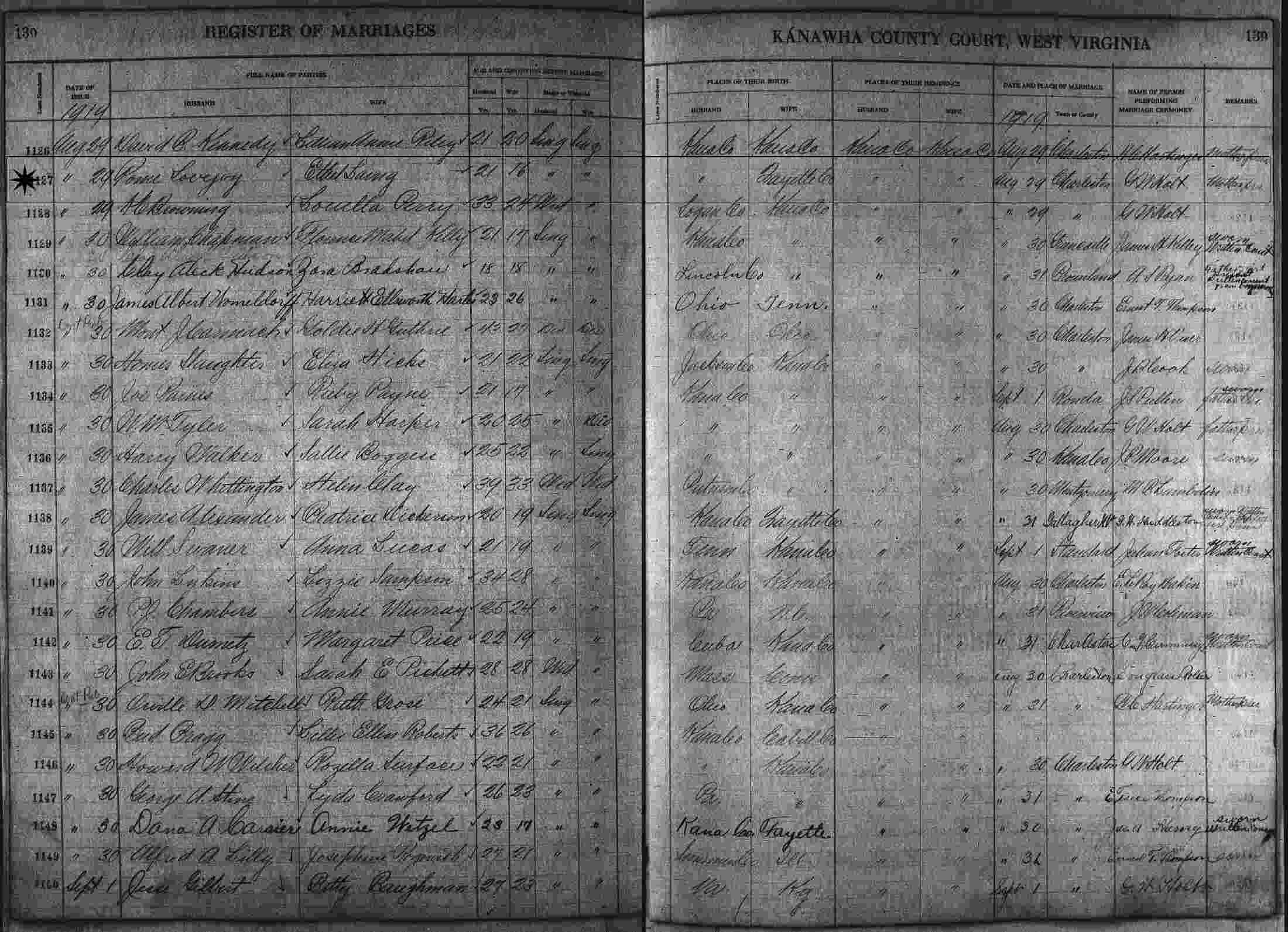 Born: About 1904 in Kanawha County, West Virginia.