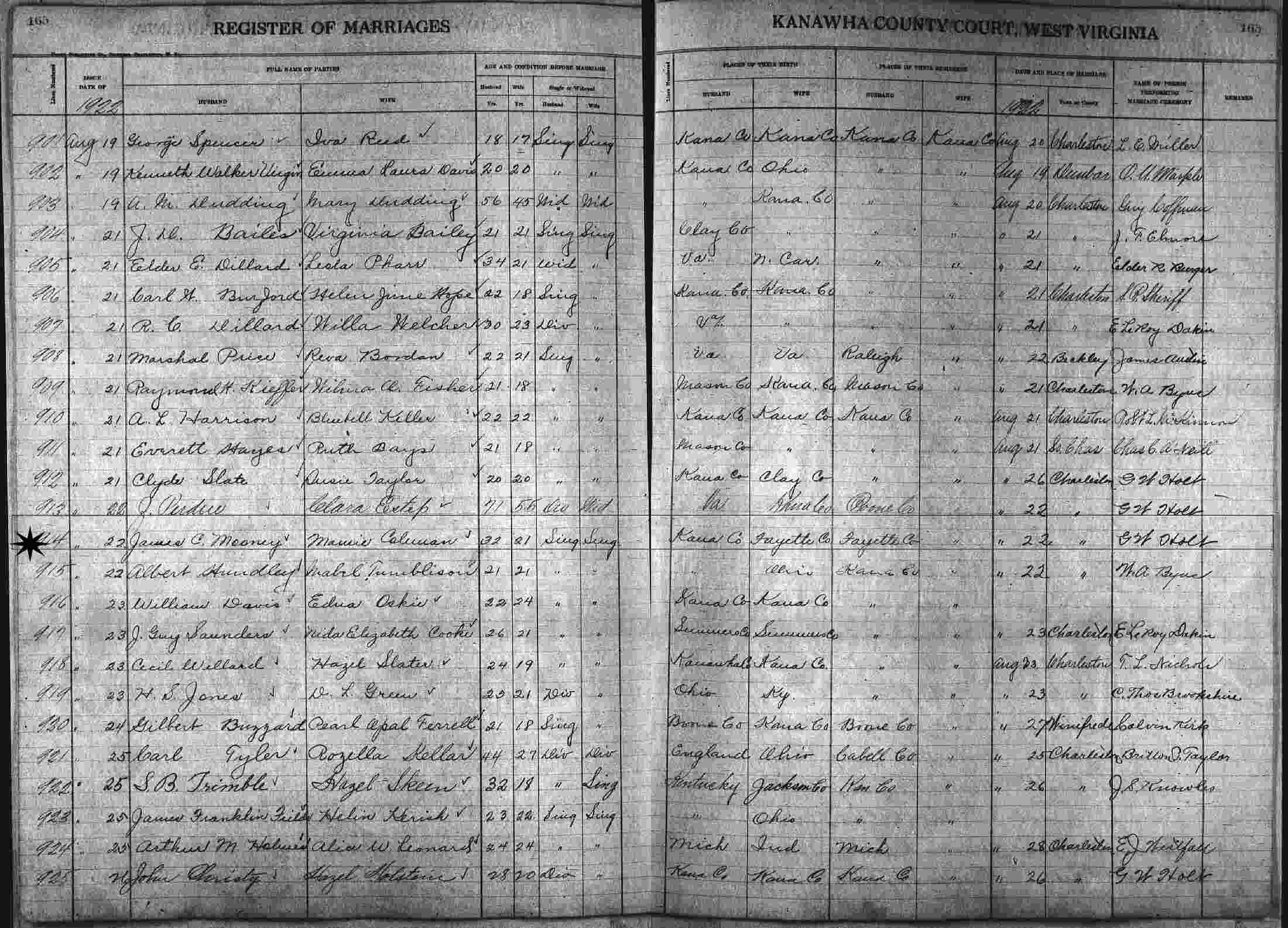 Married: Mamie Coleman August 22, 1922 in Charleston, Kanawha County, West Virginia.