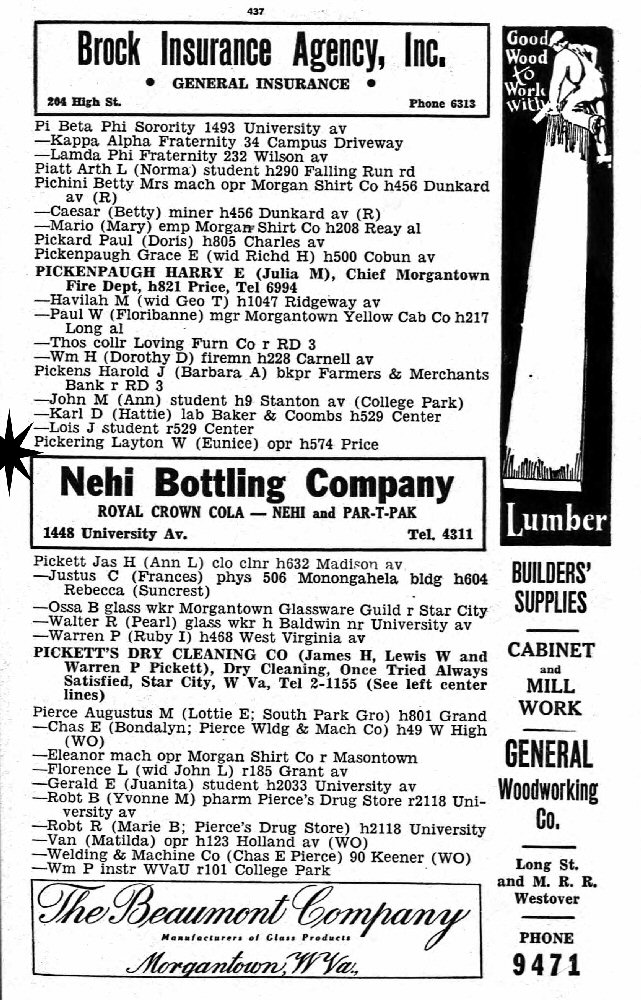 1947 - 574 Price, Morgantown, Monongalia County, West Virginia.