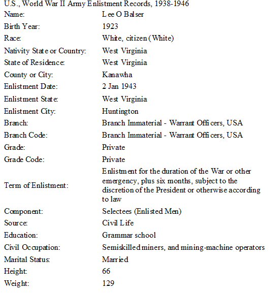 Notes for LEE OTTIE BALSER: