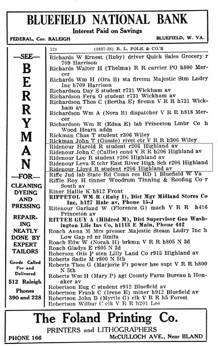 Notes for LEO ROBERT RIDENOUR: