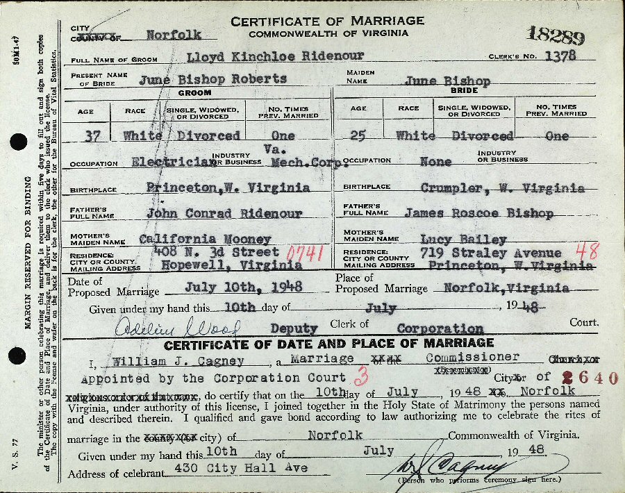 (2) June Bishop July 10, 1948 in Norfolk, Virginia.