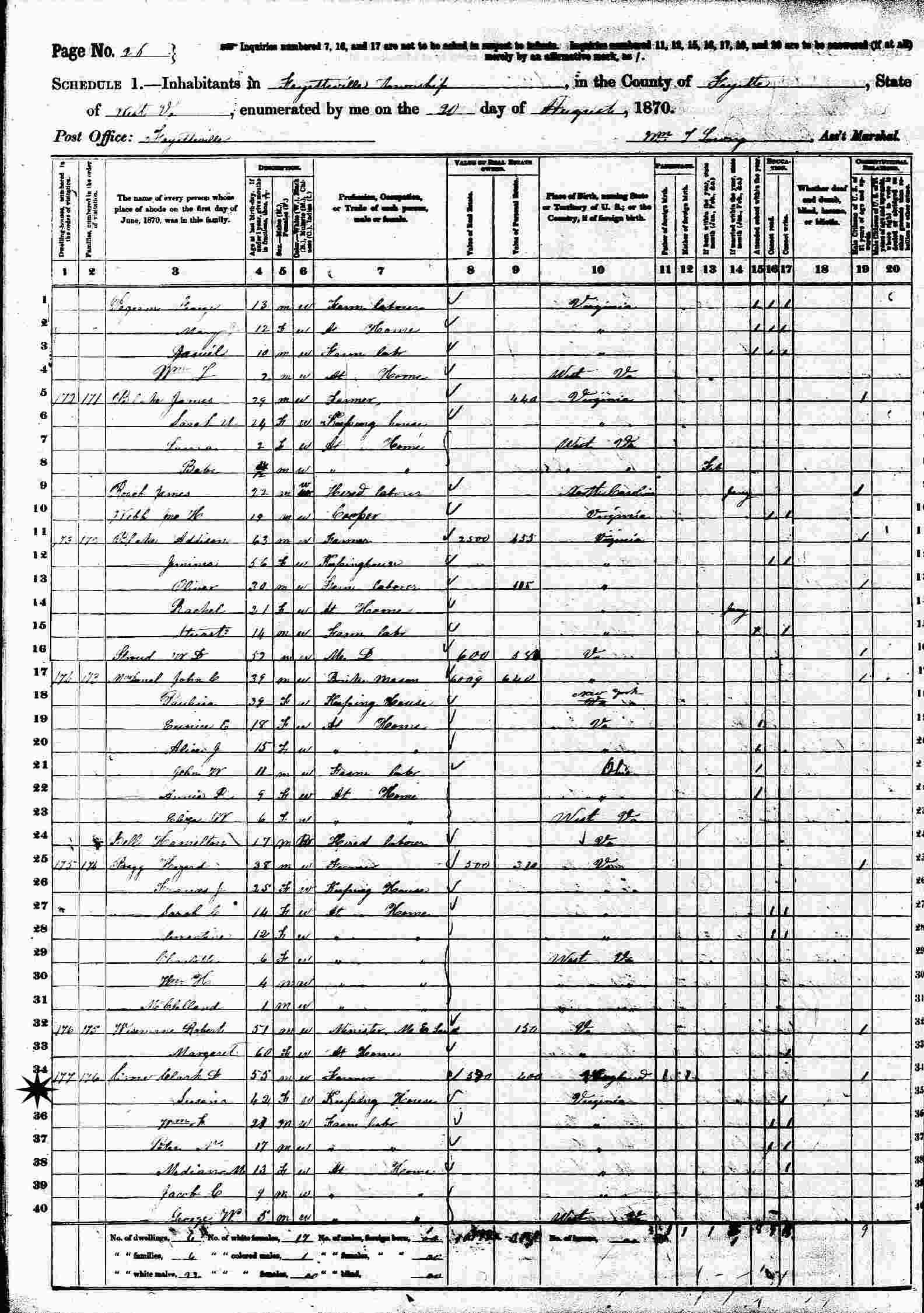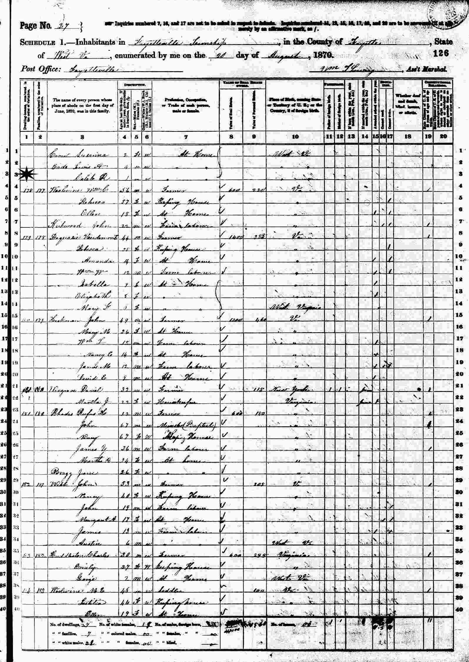 August 20, 1870 - Fayetteville Town, Fayette County, West Virginia.