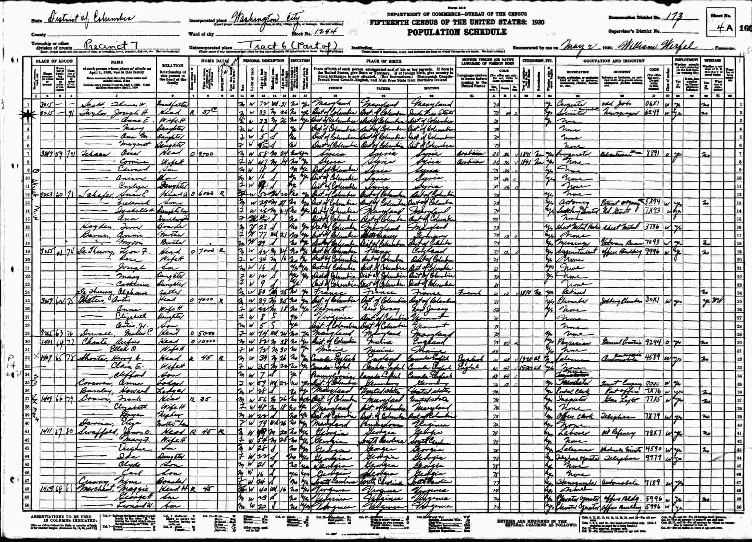 May 2, 1930 - 3215 O Street, N.W., Block 1244, Tract 6, Precinct 7, Supervisor's District 1, Enumeration District 173, Washington, District of Columbia.