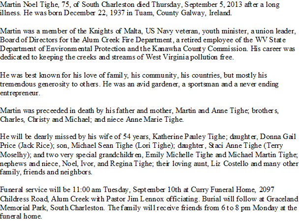 Died: September 5, 2013 in South Charleston, Kanawha County, West Virginia.