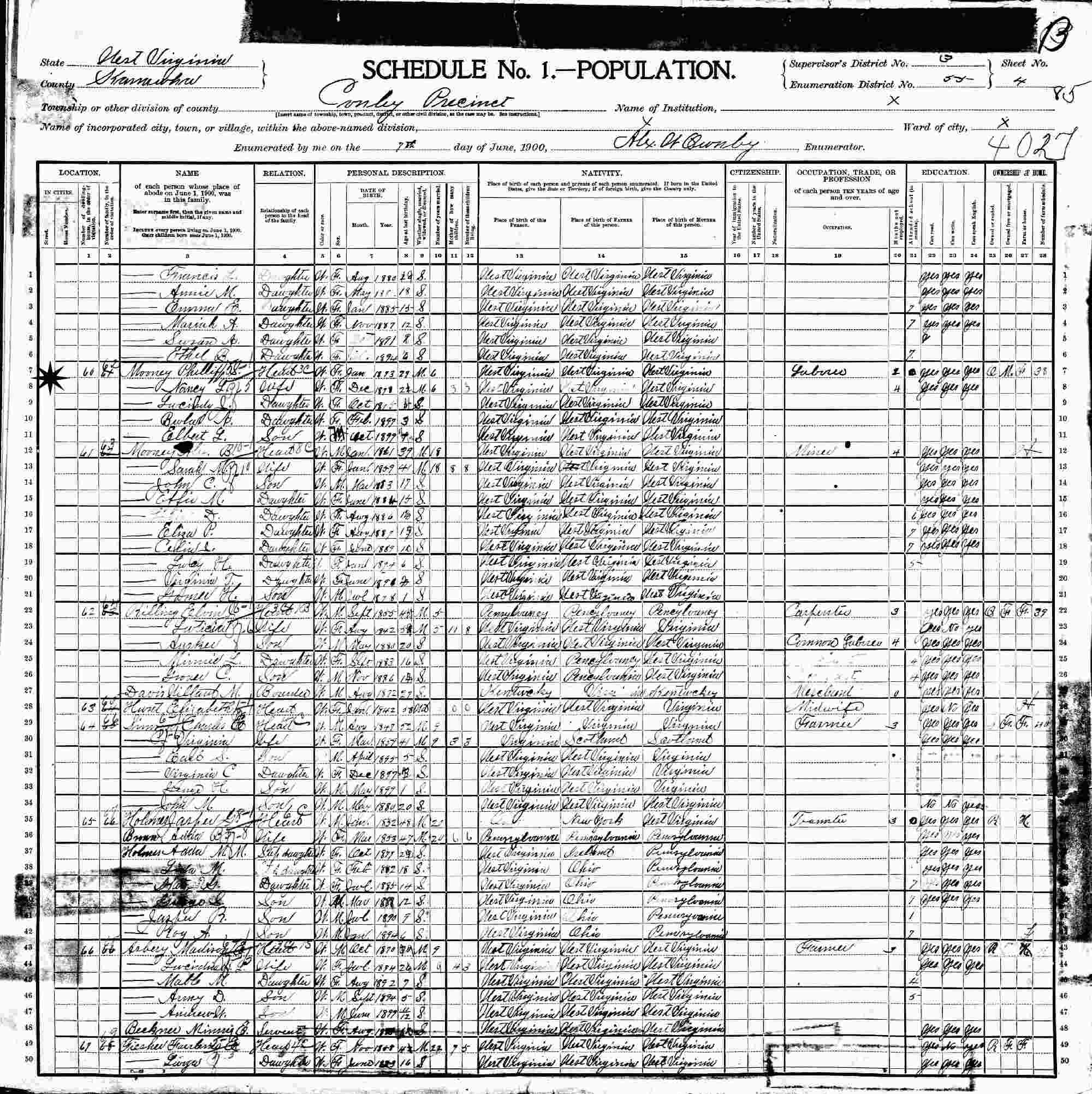 June 7, 1900 - Supervisor's District 3, Enumeration District 55, Conley Precinct, Kanawha County, West Virginia.