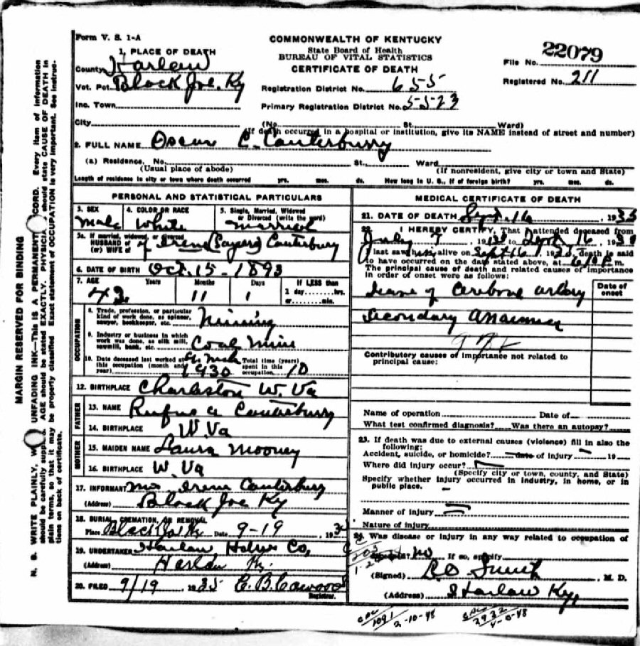 Died: September 16, 1935 in Harlan County, Kentucky.