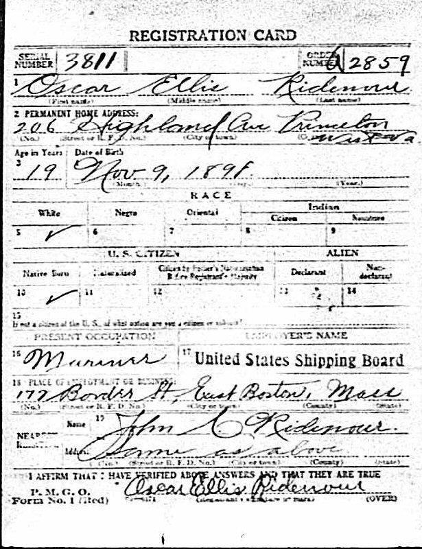 Notes for OSCAR ELLIS RIDENOUR: