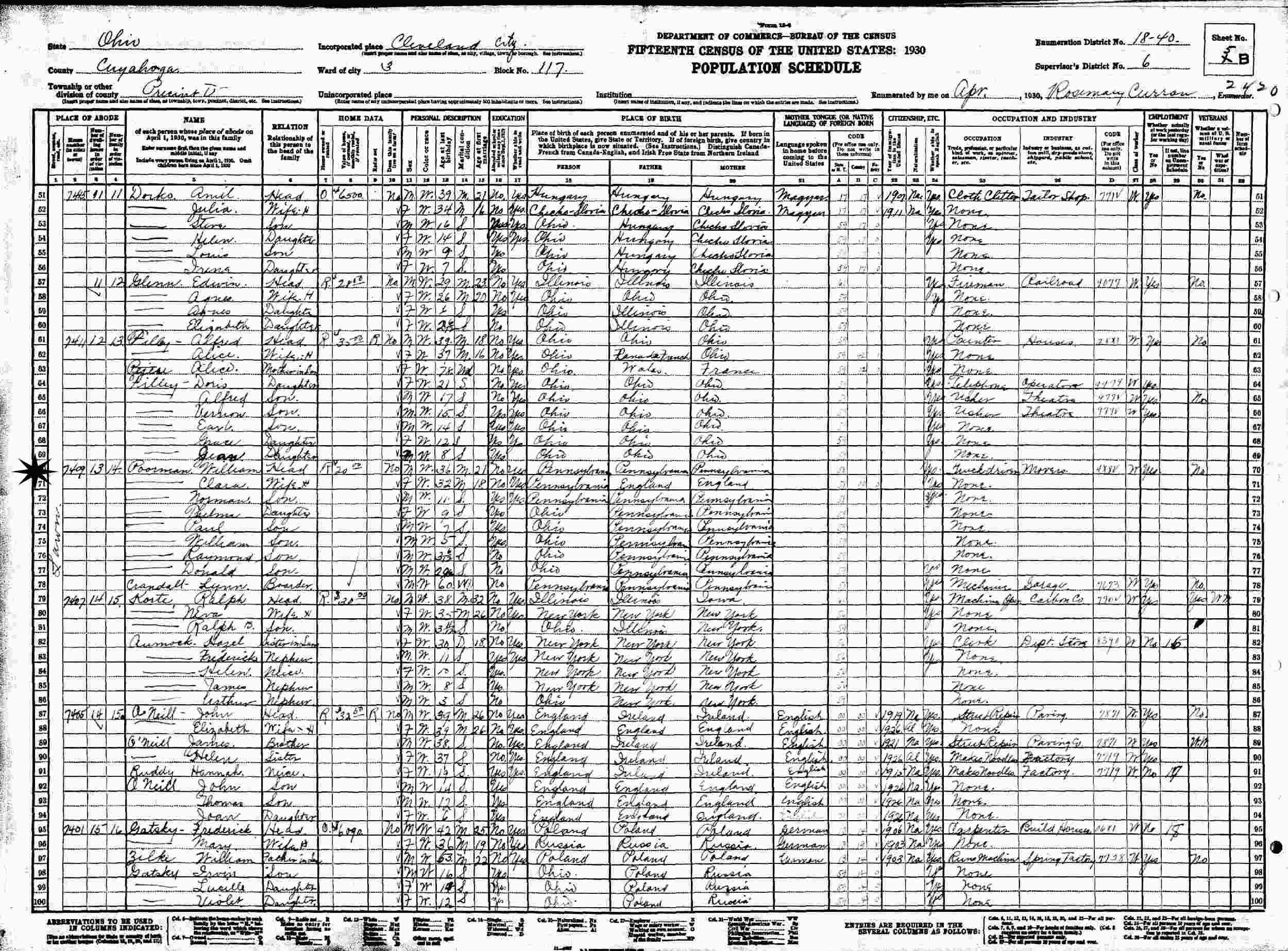 April, 1930 - 7409 Lawn, Ward 3, Block 117, Precinct D, Supervisor's District 6, Enumeration District 18-40, Cleveland, Cuyahoga County, Ohio.