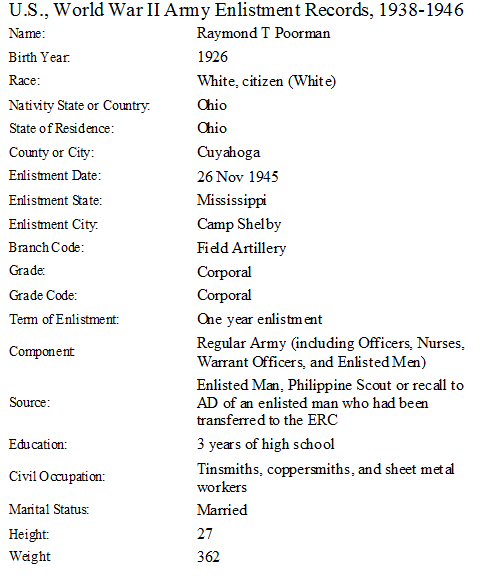 Military Enlistment: November 26, 1945 - WWII - U.S. Army.