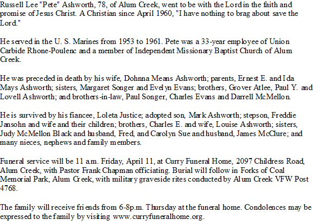 Notes for RUSSELL LEE "PETE" ASHWORTH: