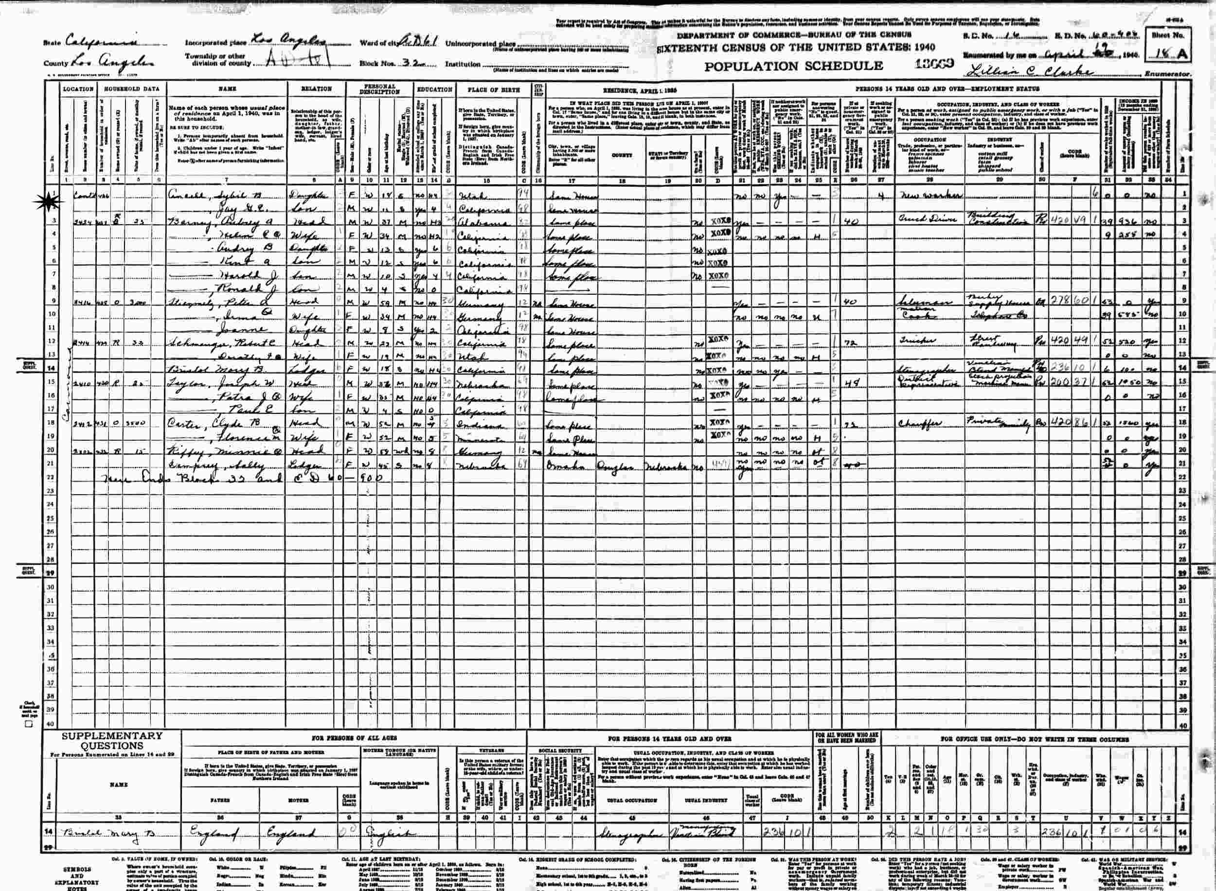 April 19, 1940 - 2426 Carmona, Supervisor's District 16, Enumeration Distrct 60-408, Los Angeles, Los Angeles County, California.