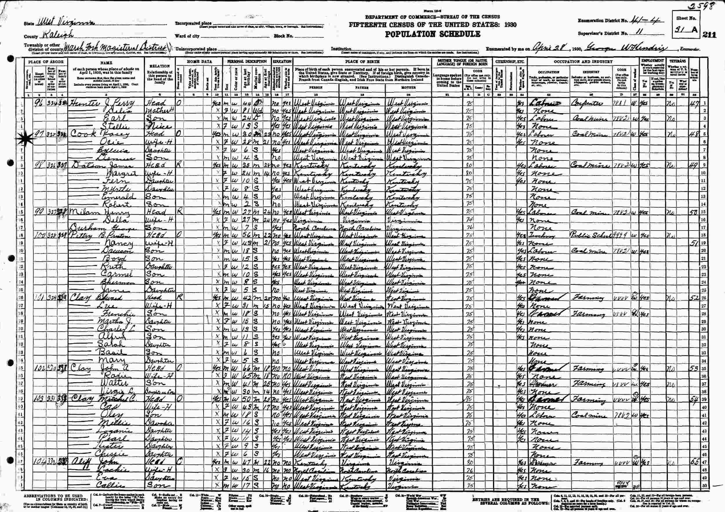 April 28, 1930 - Supervisor's District 11, Enumeration District 41-4, Marsh Fork Magisterial District, Raleigh County, West Virginia.