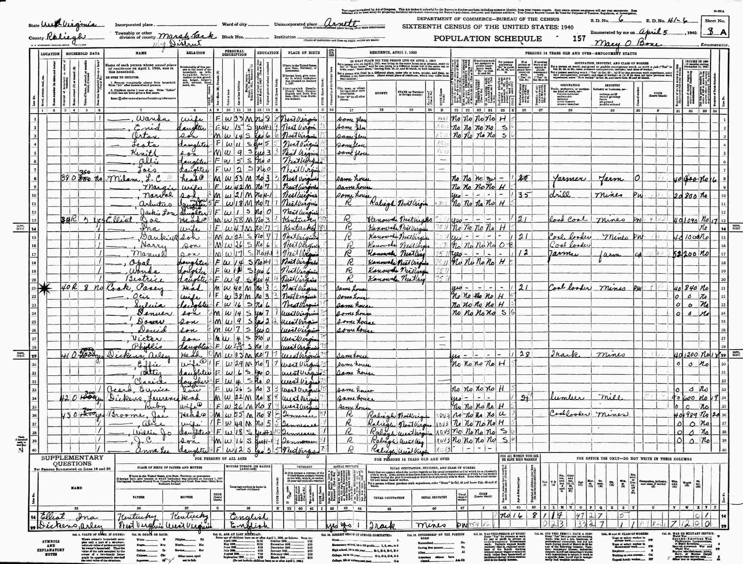 April 5, 1940 - Supervisor's District 6, Enumeration District 41-6, Marsh Fork Magisterial District, Arnett, Raleigh County, West Virginia.