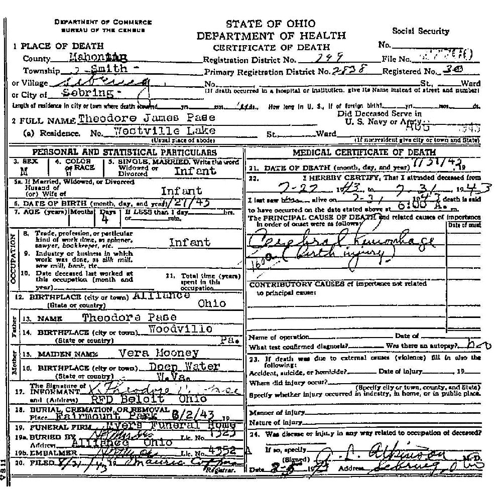 Died: July 27, 1943 in Sebring, Mahoning County, Ohio.