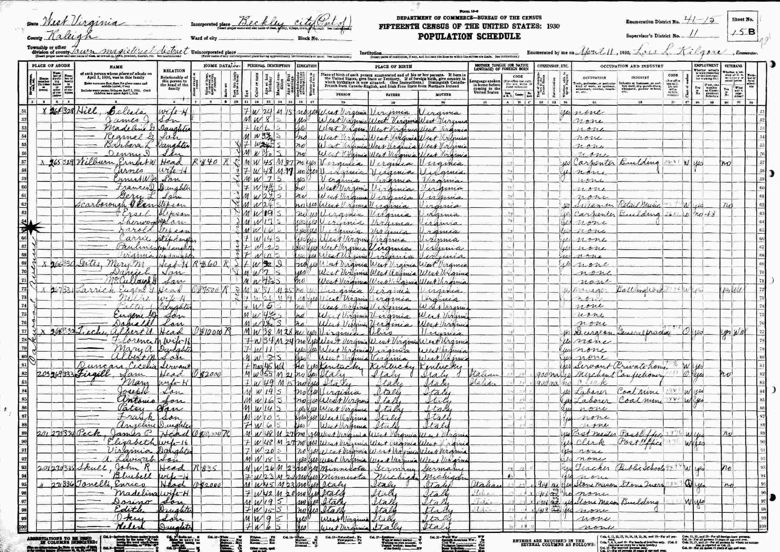April 6, 1940 - 20 Hargrove Street, Supervisor's District 6, Enumeration District 41-25, Town District, Berkley, Raleigh County, West Virginia (w/stepfather and mother).