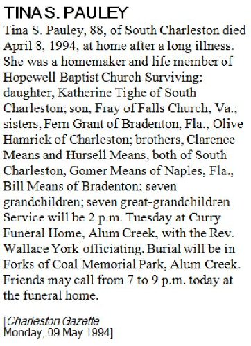 Notes for TINA SYLVIA MEANS PAULEY: