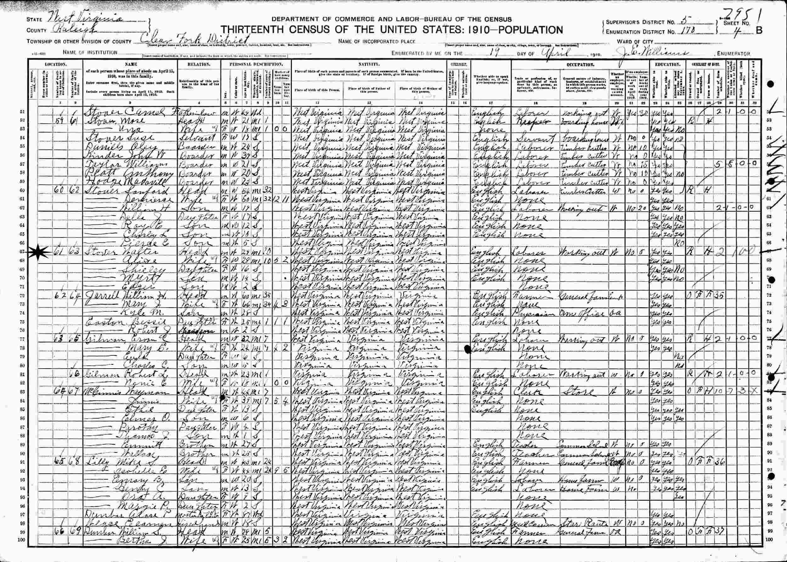 April 19, 1910 - Supervisor's District 5, Enumeration District 170, Clear Fork District, Raleigh County, West Virginia.