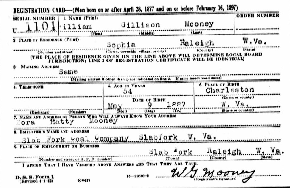 Last Residence: Beckley, Raleigh County, West Virginia.
