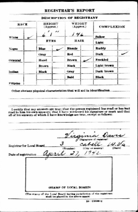 Born: January 31, 1891 in Putnam County, West Virginia.