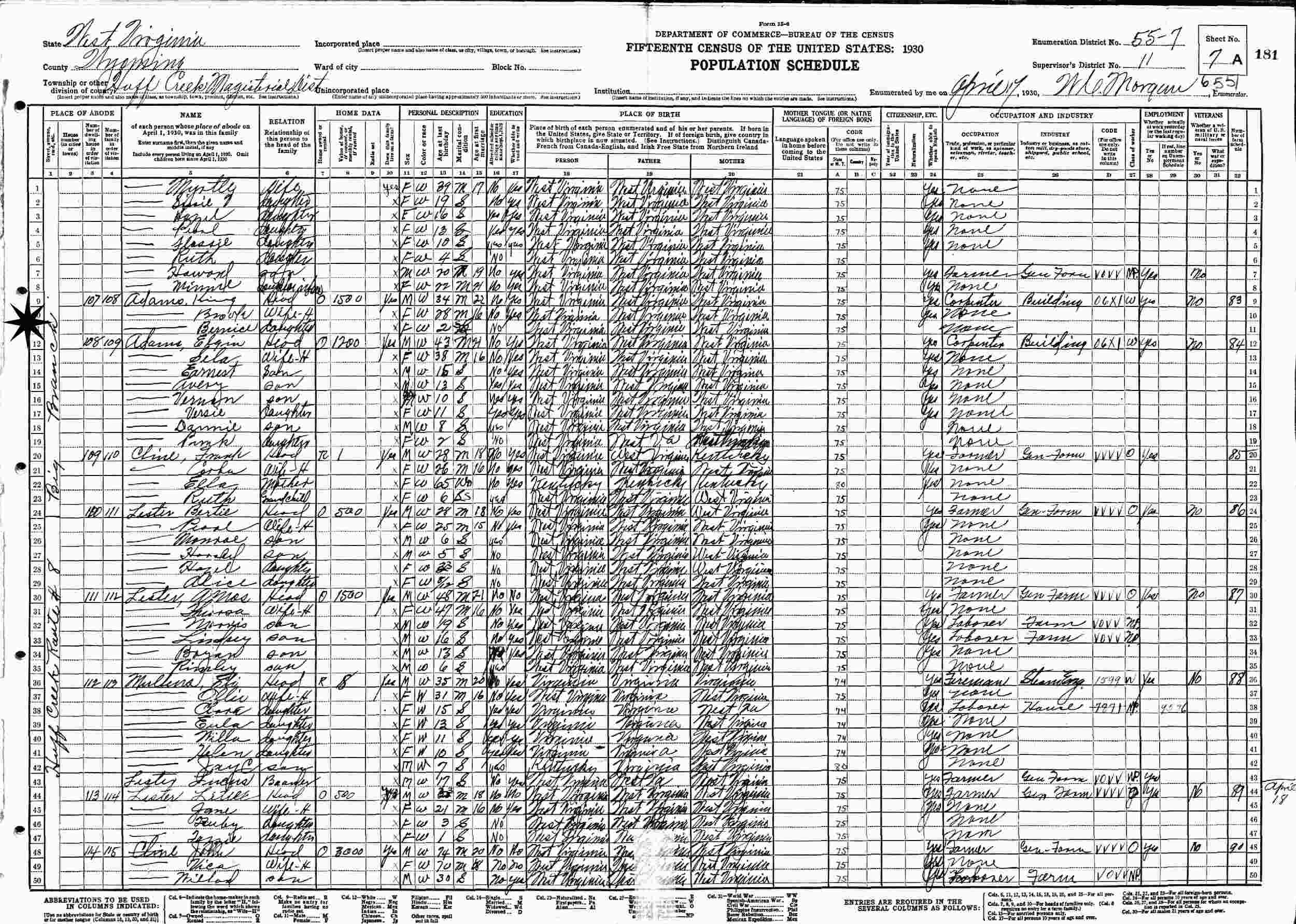 April 17, 1930 - Big Branch Road, Supervisor's District 11, Enumeration District 55-7, Huff Creek Magisterial District, Wyoming County, West Virginia.