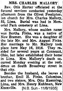 Notes for BERTHA LOUISE FINKE MALLORY: