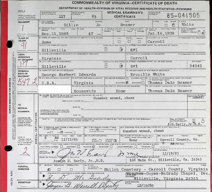 Died: December 15, 1985 in Hillsville, Carroll County, Virginia.