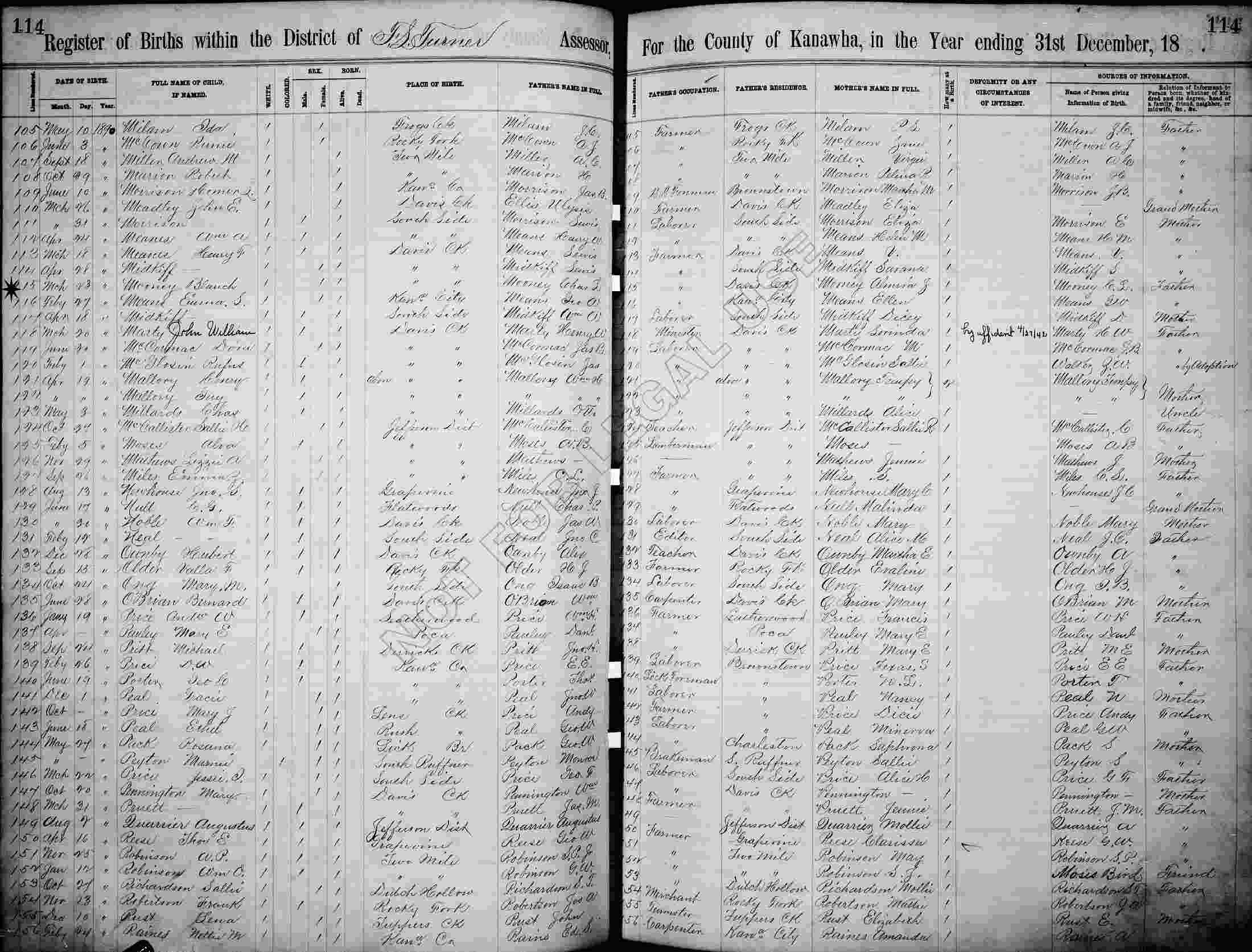 Born: March 23, 1890 in Davis Creek, Kanawha County, West Virginia.
