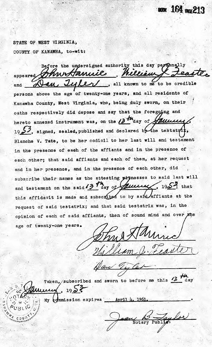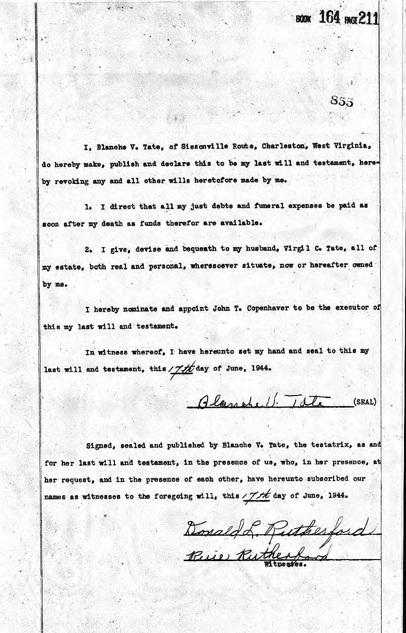 Married: Virgil Chapman Tate June 29, 1918 in Kanawha County, West Virginia.