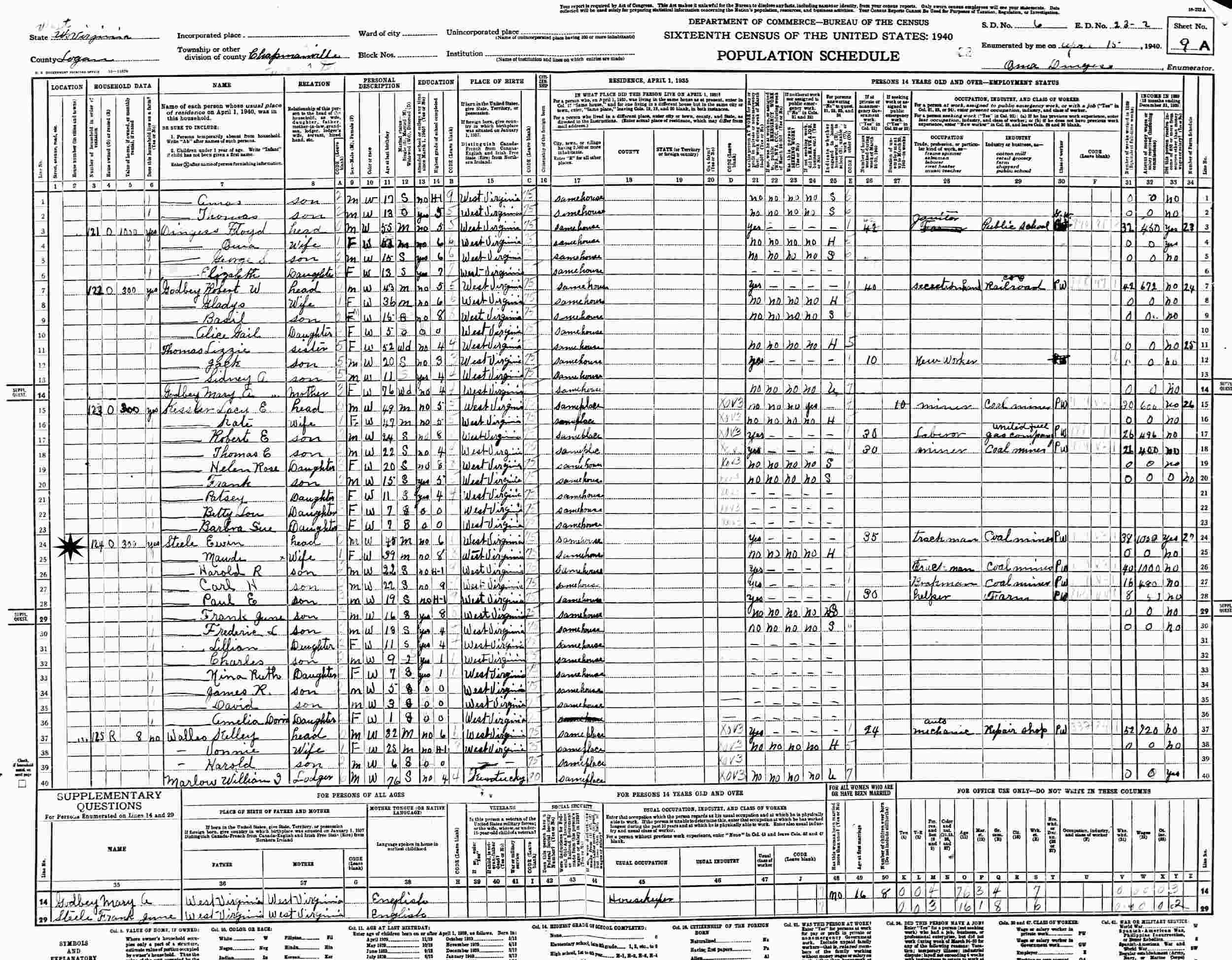 April 15, 1940 - Supervisor's District 6, Enumeration District 23-2, Chapsmanville, Logan County, West Virginia.