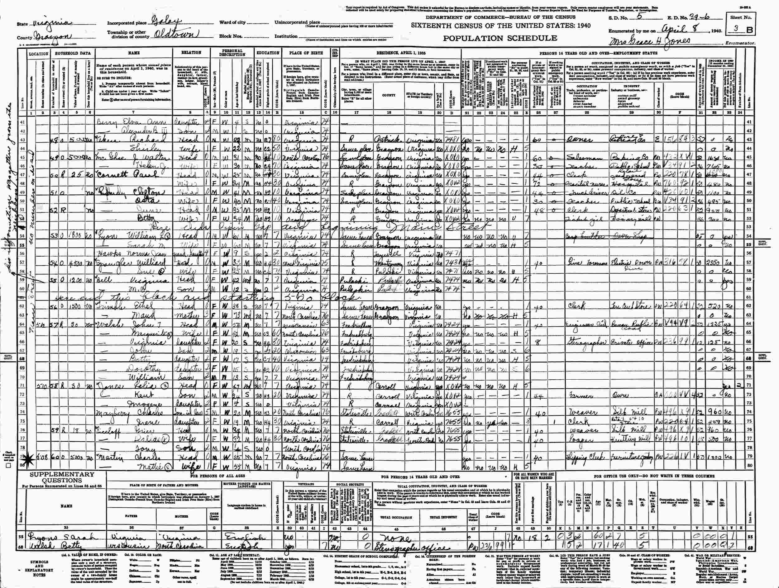 April 8, 1940 - 508 Main Street, Supervisor's District 5, Enumeration District 39-6, Oldtown, Galax, Grayson County, Virginia.