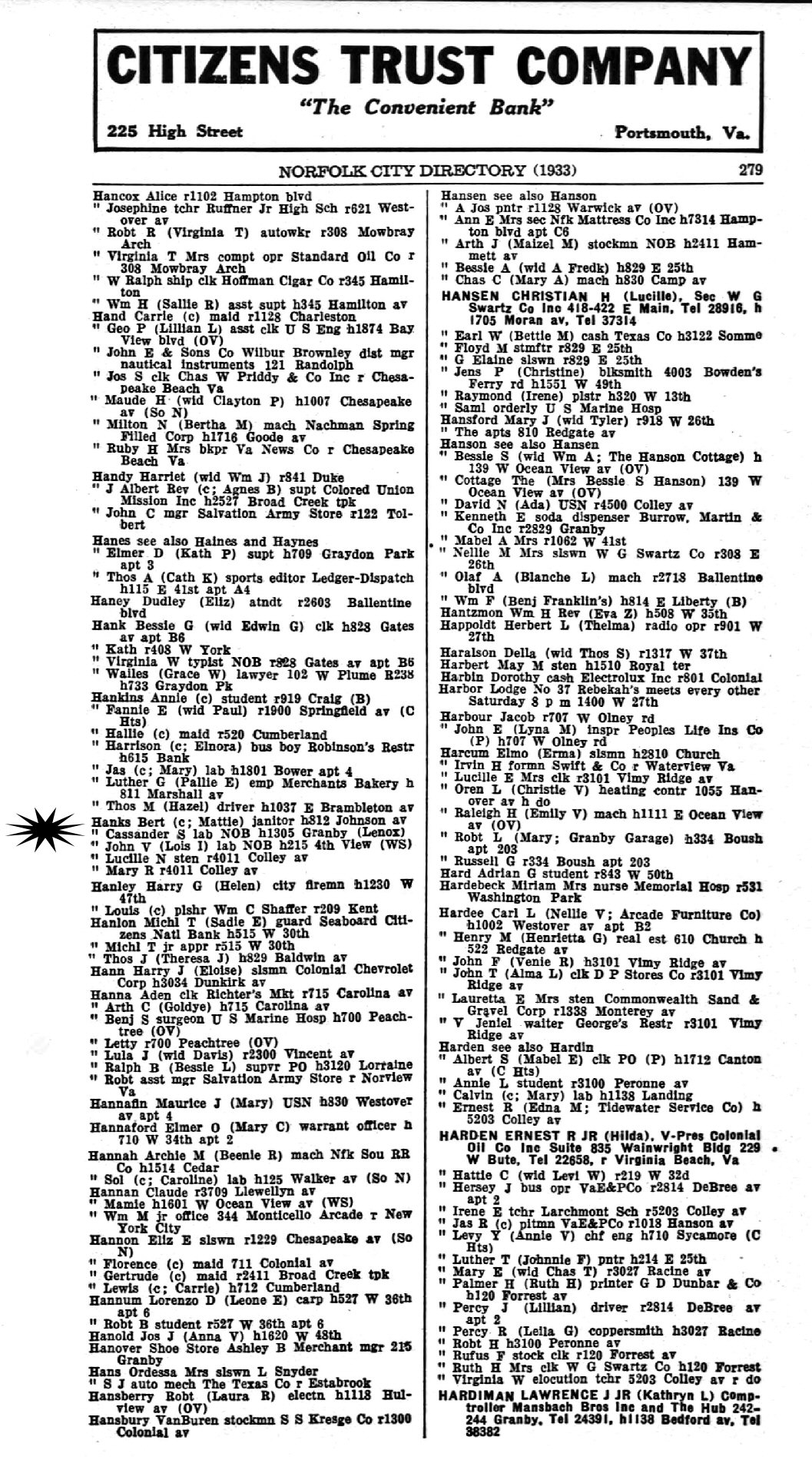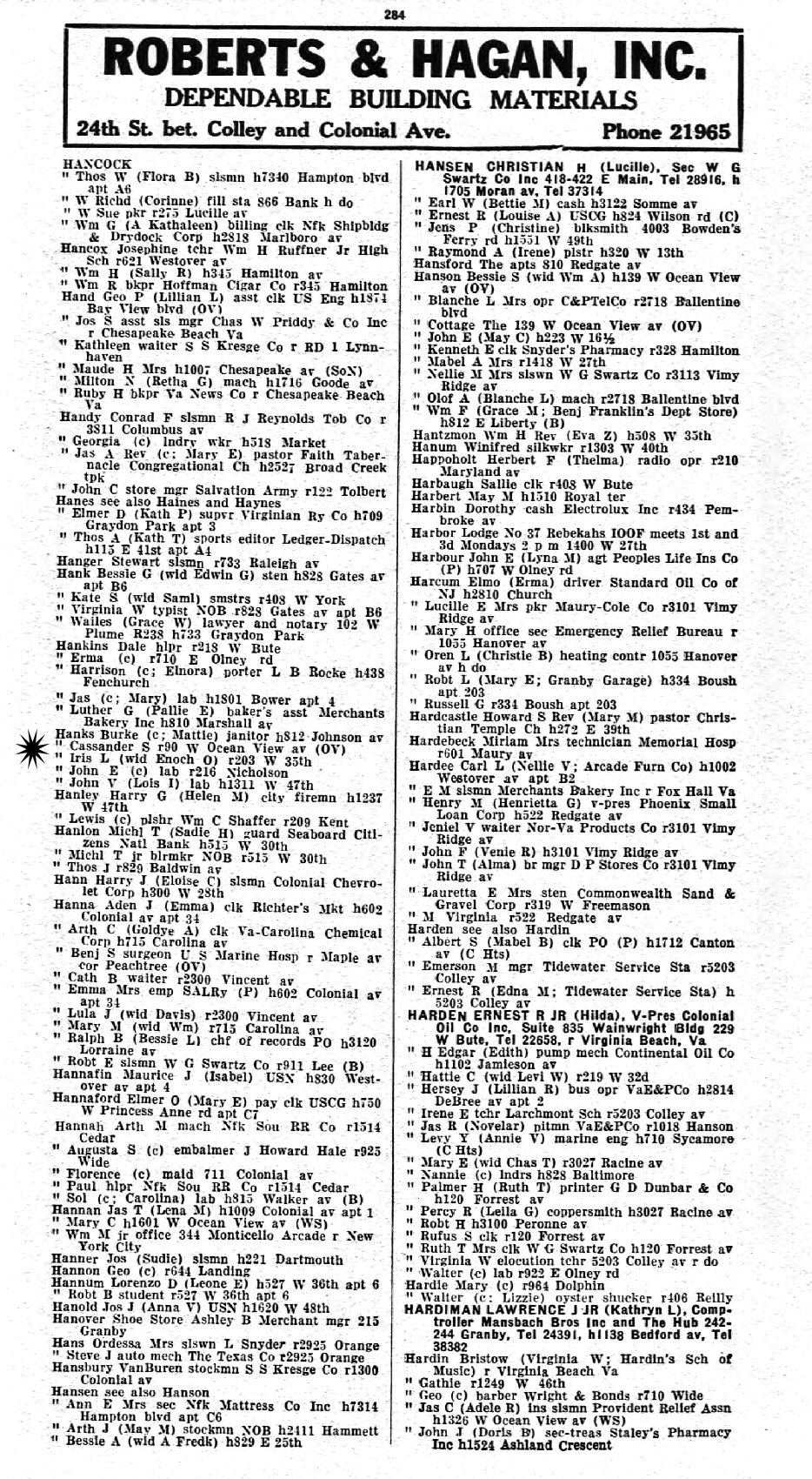 1932-1933 - 1305 Granby Lenox, Norfolk, Porsmouth, Virginia.