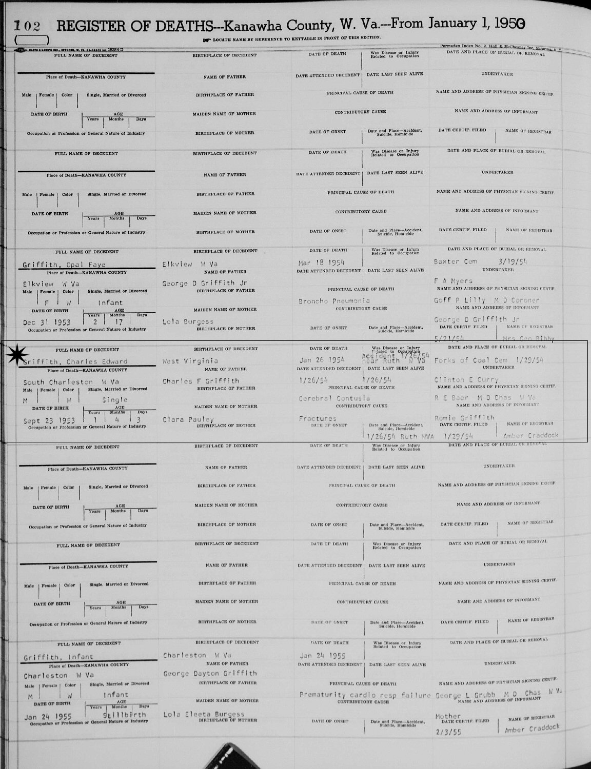 Died: January 26, 1954 in Charleston, Kanawha County, West Virginia.