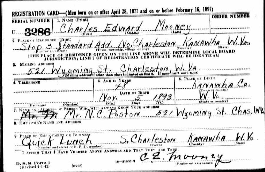 Son of Samuel Preston and Virginia Alice (Darlington) Mooney, Sr.