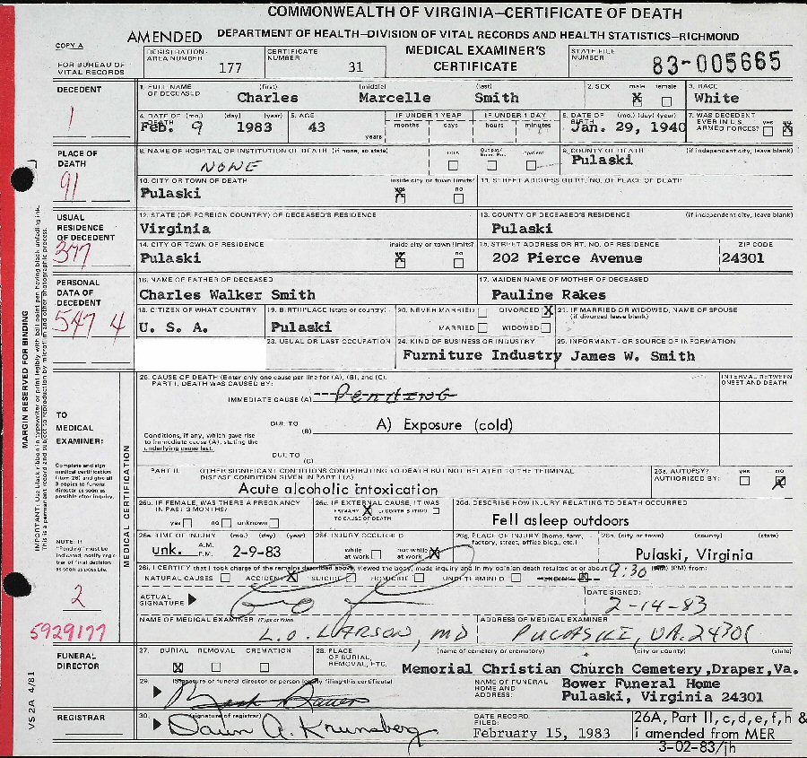 Died: February 9, 1983 in Pulaski, Pulaski County, Virginia.