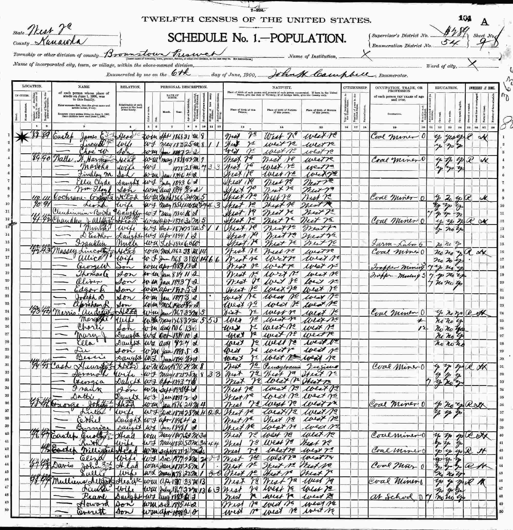 June 06, 1900 - Supervisor's District 289, Enumeration District 54, Brownstown Precinct, Kanawha County, West Virginia.