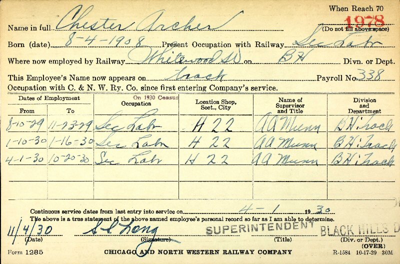 Died: June 30, 1969 in Custer, Custer County, South Dakota.