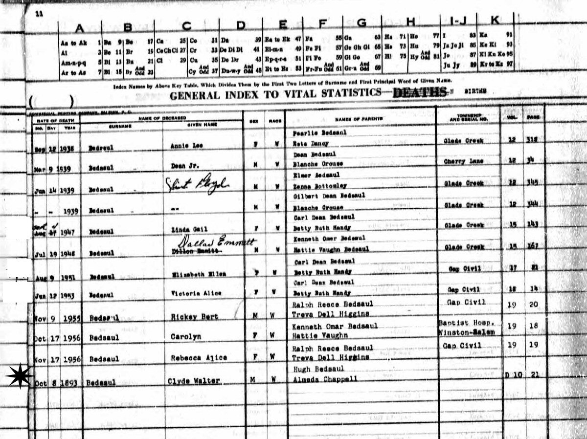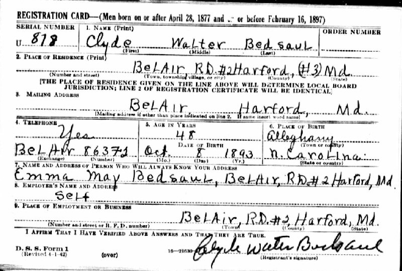 Notes for CLYDE WALTER BEDSAUL: