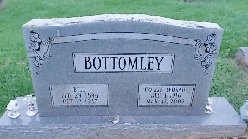 Married: (1) Bill Bottomley before 1937 in Unknown. (He was born February 29, 1896. d. October 12, 1937.)