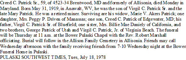Son of Virgil Clinton and Mary Wilma (Johnston) Patrick, Sr.
