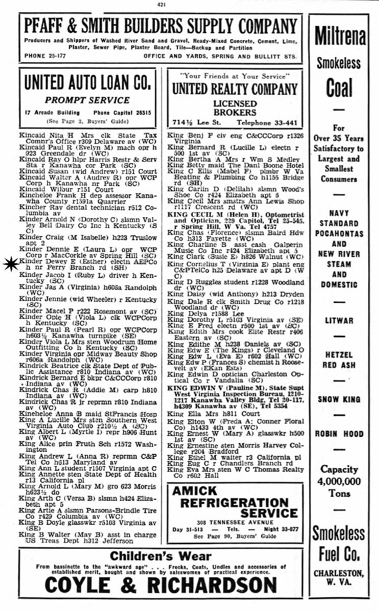 1938 - Ferry Branch Road, Charleston, Kanawha County, West Virginia.