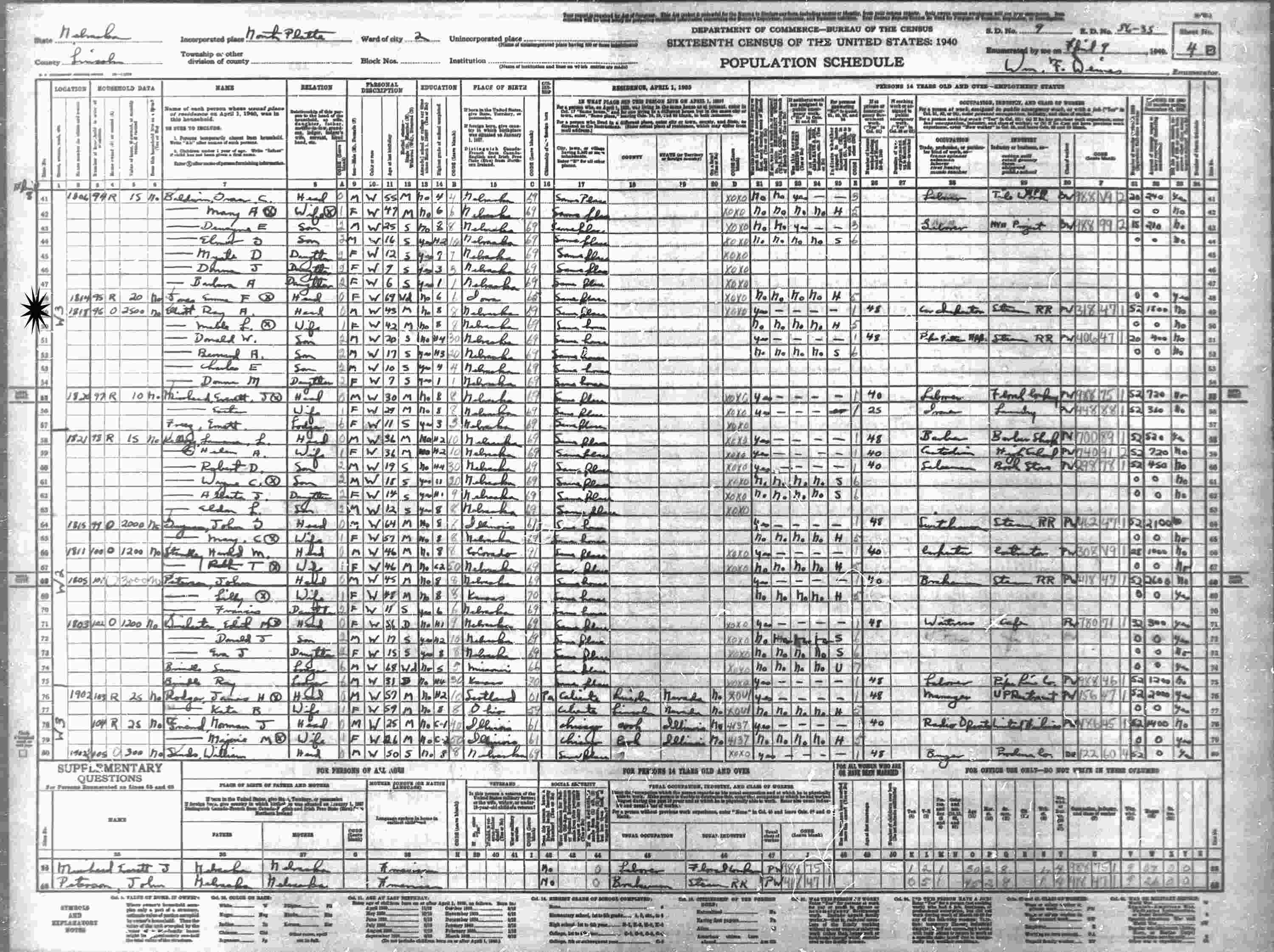 April 9, 1940 - Ward 3, North Platte, Lincoln County, Nebraska.