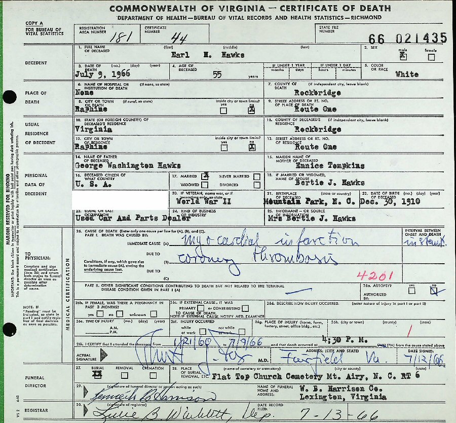 Notes for EARL DAVID HARDEN HAWKS: