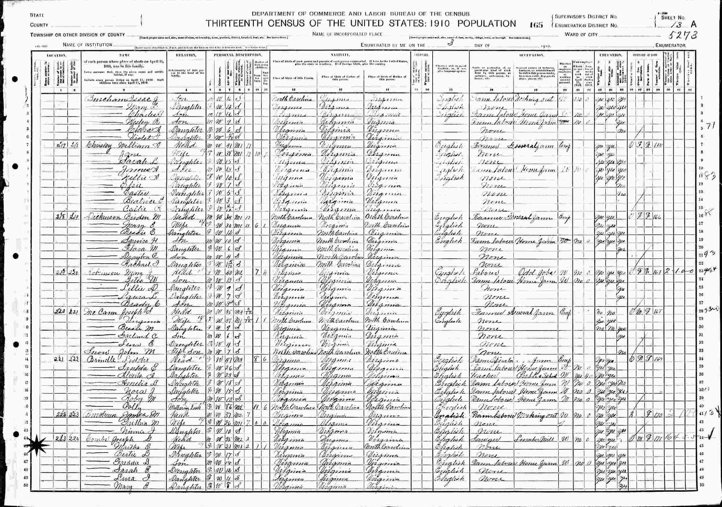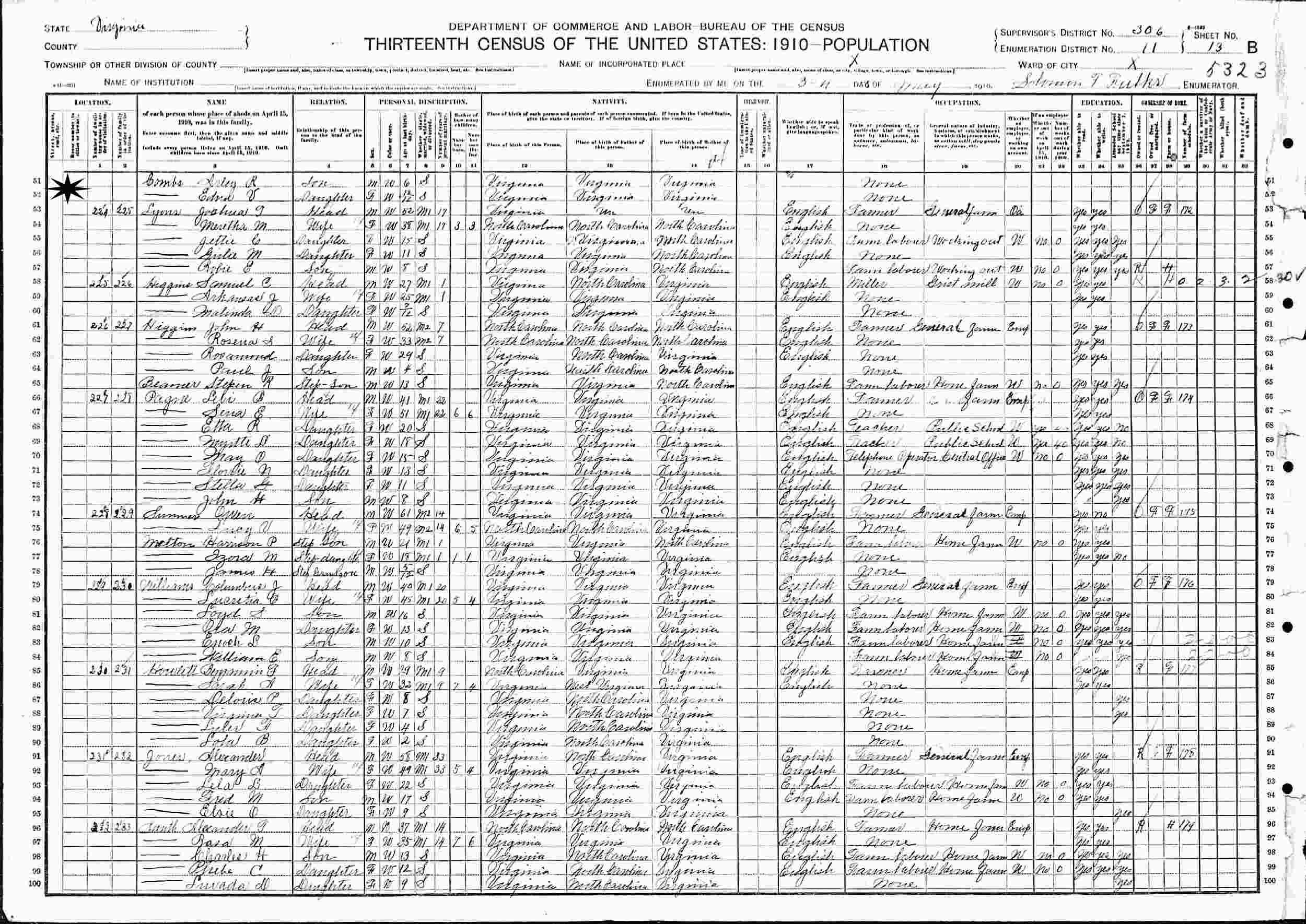 May 3-4, 1910 - Supervisor's District 306, Enumeration District 11, Virginia.